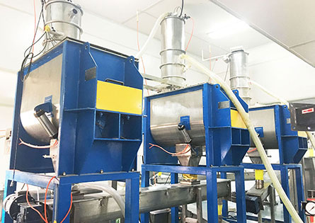 根據(jù)不同的行業(yè)、不同的產(chǎn)量要求,本生產(chǎn)線選擇不同的配置,設(shè)備涉及投料站、輸送設(shè)備、配料設(shè)備、混合設(shè)備、布料設(shè)備、除塵設(shè)備、控制系統(tǒng)等